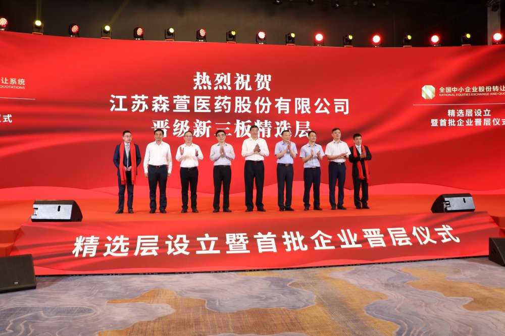 江苏森萱医药股份有限公司作为首批32家挂牌企业之一,在江苏分会场同步敲响了开始的锣鼓,精华制药集团股份有限公司党委书记、董事长尹红宇和总裁周云中到场见证。