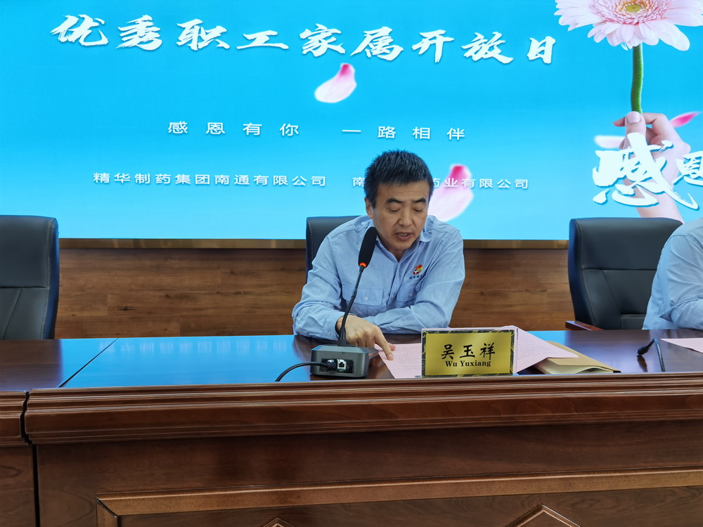 会议伊始,由精华集团副总裁、江苏森萱董事长吴玉祥致贺词。吴总在讲话中深情回忆了过去的一年,公司在突如其来的新冠疫情面前,全体员工团结一心、众志成城、鼓足干劲,谱写了一曲共克时艰、跨越发展的动人篇章。江苏森萱医药股份有限公司作为全国首批企业成功在新三板精选层挂牌,销售收入、利润指标均创历史新高等不凡业绩……,同时提出,成绩的取得源于每一位员工的努力与奋斗,也源于背后为此默默付出的每一个家庭。他在讲话中特别感谢员工家属对公司的理解和信任,正因为有众多家属在默默奉献和无私付出,公司所有员工才能够心无旁骛安心工作。吴总表示,公司将进一步改善生产环境和员工的生活条件,完善各项福利待遇、优化选人用人机制,从各个层面让员工和家人共享企业发展的成果。