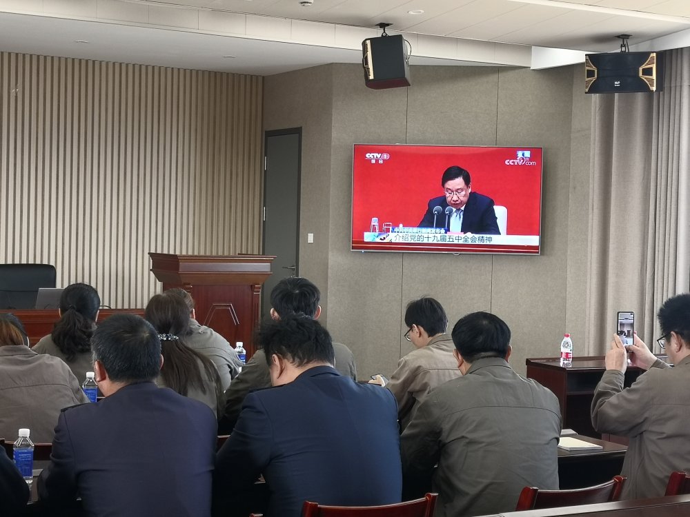全体党员现场观看了中央电视台直播的中共中央新闻发布会。2020年10月26日上午,中国共产党第十九届中央委员会第五次全体会议在京召开,会议通过了中央委员会总书记习近平代表中央政治局向全会作工作报告《中共中央关于制定国民经济和社会发展第十四个五年规划和二〇三五年远景目标的建议》,全会充分肯定党的十九届四中全会以来中央政治局的工作。全会提出了到二〇三五年基本实现社会主义现代化远景目标;提出了“十四五”时期经济社会发展指导思想和必须遵循的原则;提出了“十四五”时期经济社会发展主要目标。全会强调,实现“十四五”规划和二〇三五年远景目标,必须坚持党的全面领导,充分调动一切积极因素,广泛团结一切可以团结的力量,形成推动发展的强大合力。全会号召全党全国各族人民要紧密团结在以习近平同志为核心的党中央周围,同心同德,顽强奋斗,夺取全面建设社会主义现代化国家新胜利!